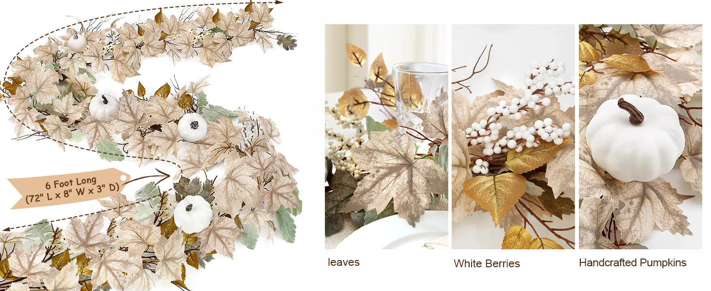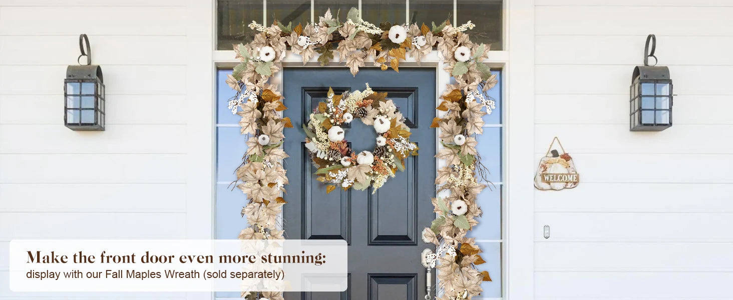 Fall Decoration - 1.75m Maple Leaf Pumpkin Berry garland - Thanksgiving Halloween Harvest decoration for home outdoor porch