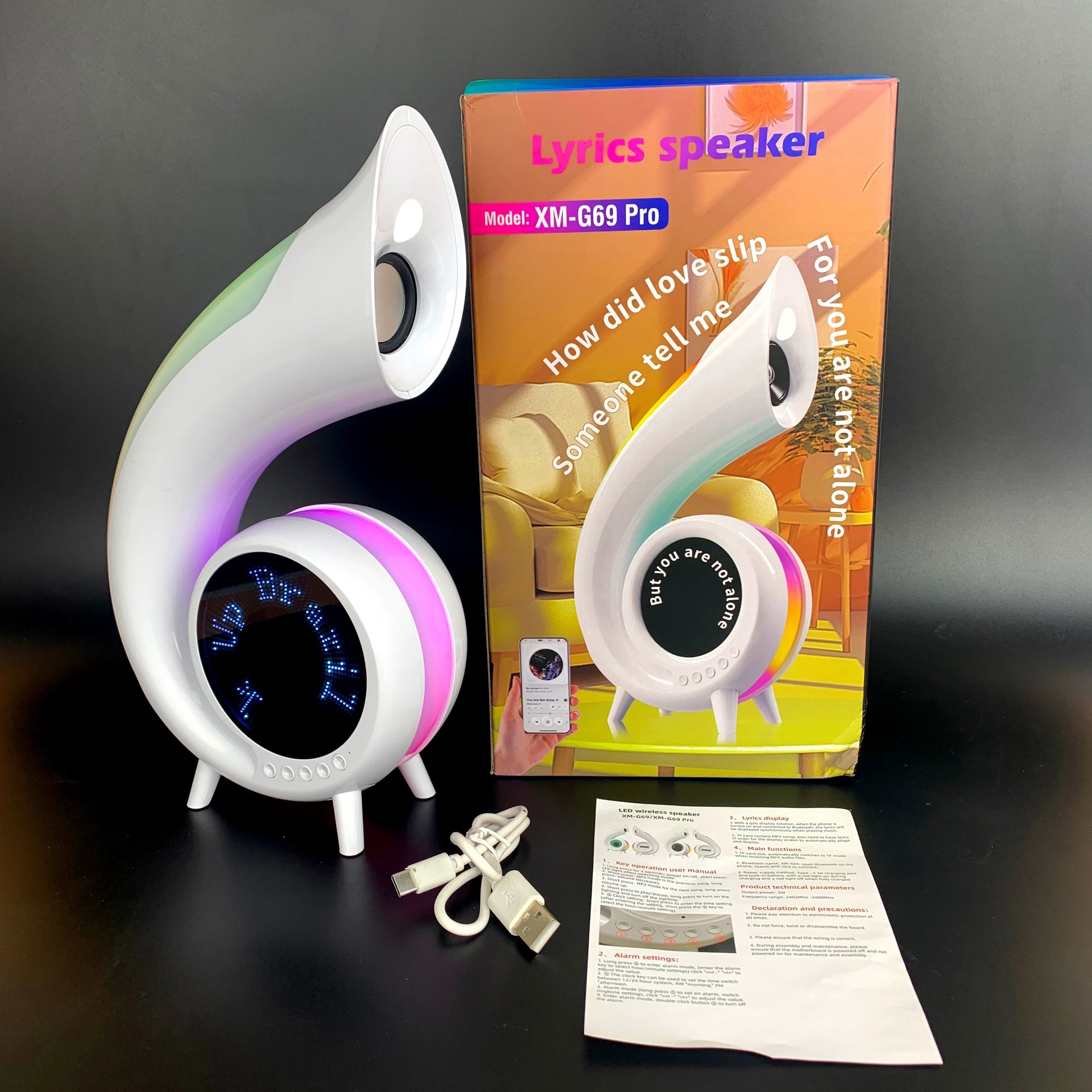 G69 RGB Wireless Bluetooth Speaker with Lyrics Display LED Night Light Alarm Clock 6-in-1 Multi-Function Adjustable Desk Lamp