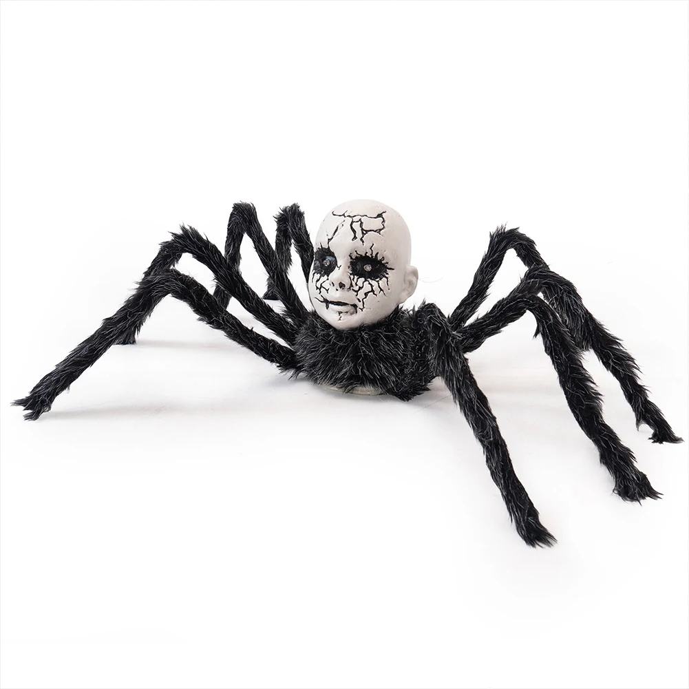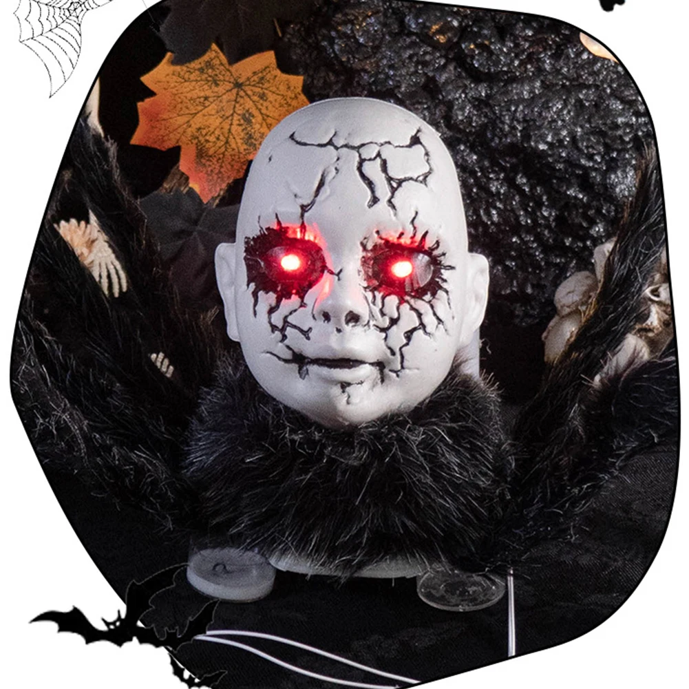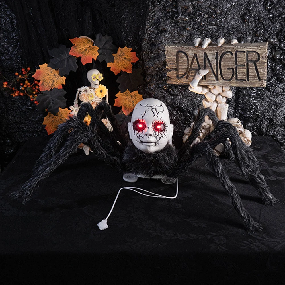 Halloween Animatronic Face Spider Sound Activated Scary Walking Spider Haunted House Prop Halloween Party Porch Decoration