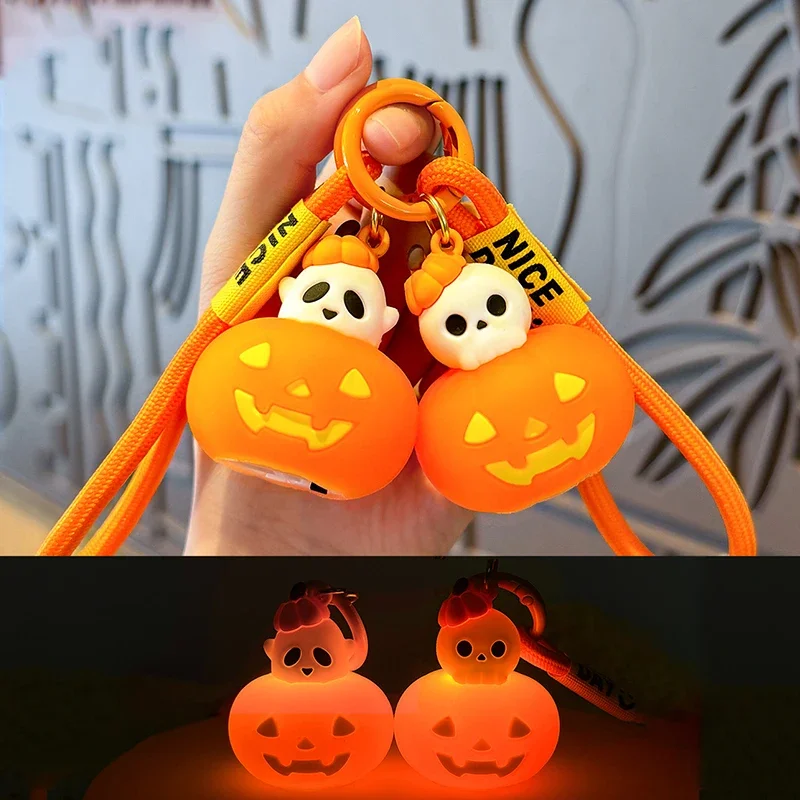 Halloween Pumpkin Lamp Keychain for Men and Women, Cartoon Skull Model, Car Bag Pendant, Keyholder Accessories, Kawaii