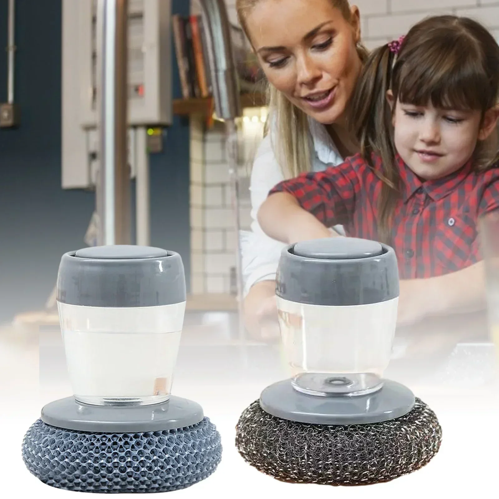 Model Number: GW1186,Automatic liquid-filled wire ball pot washing brush with handle